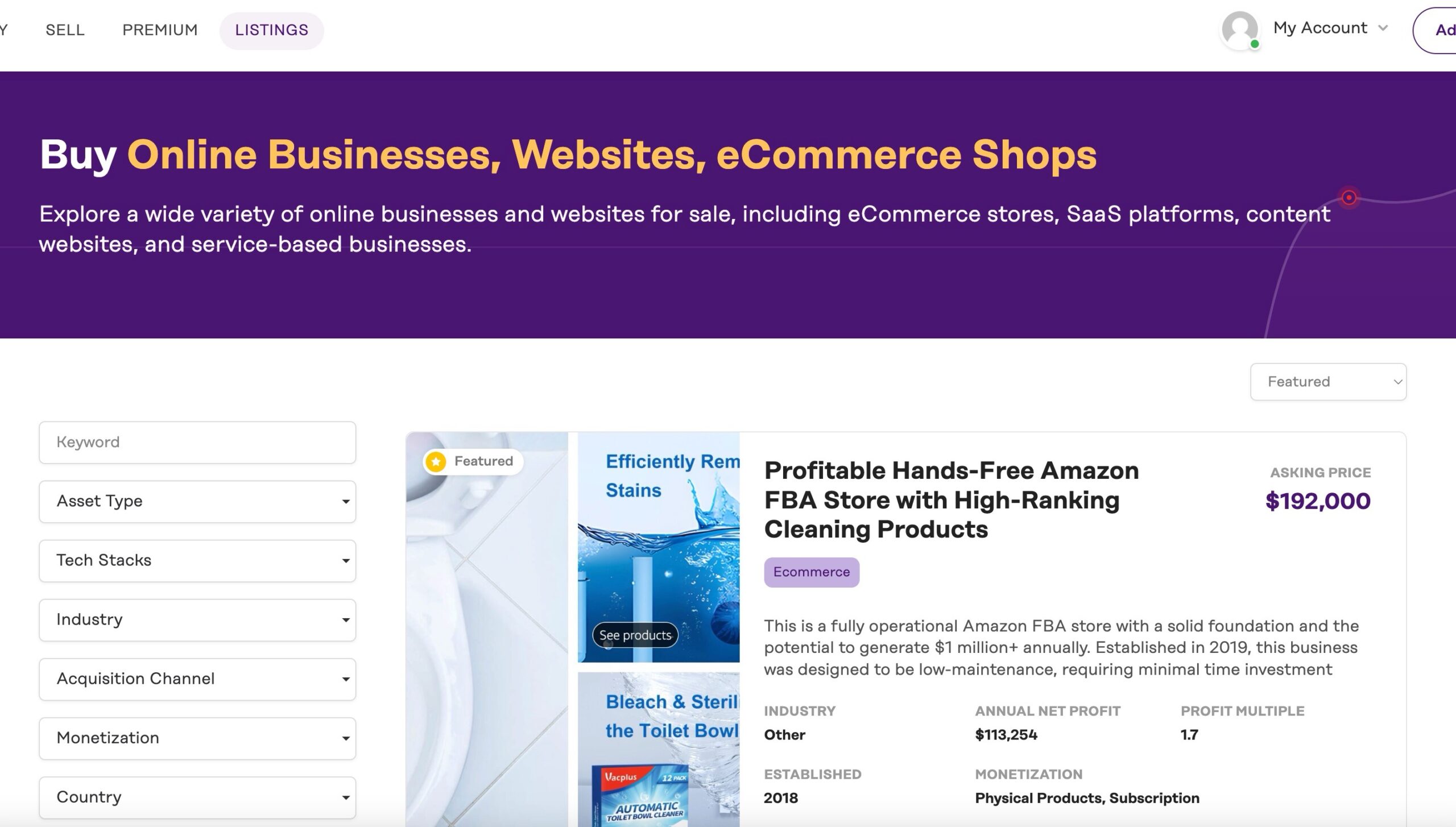 Your listing will appear at the top of search and category pages, where it’s more likely to be seen, for 30 days. For example, if you are selling an eCommerce business, the listing will be featured at the top of our “eCommerce Businesses for Sale” page. If the business is in the AI niche, it will also appear at the top of our “AI Businesses for Sale” page. Similarly, if the main traffic source is Pinterest, the listing will be displayed at the top of our “Pinterest Businesses for Sale” page, and so on.