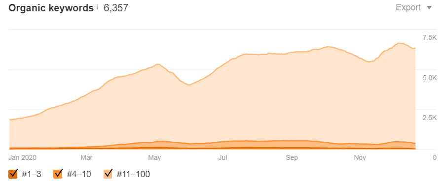 Organic keyword trends over time. Source: Ahrefs.com