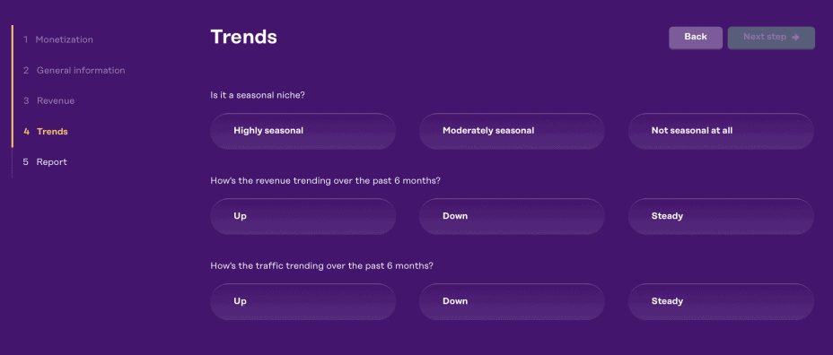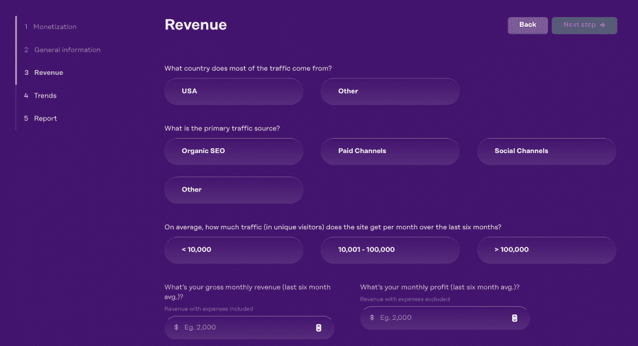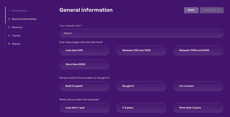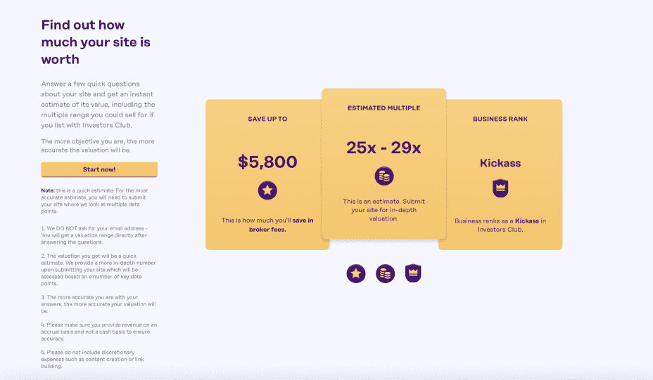 Requiring just a few minutes of your time, once you’re done you’ll be left with an estimated selling price and an honest overview of your website.