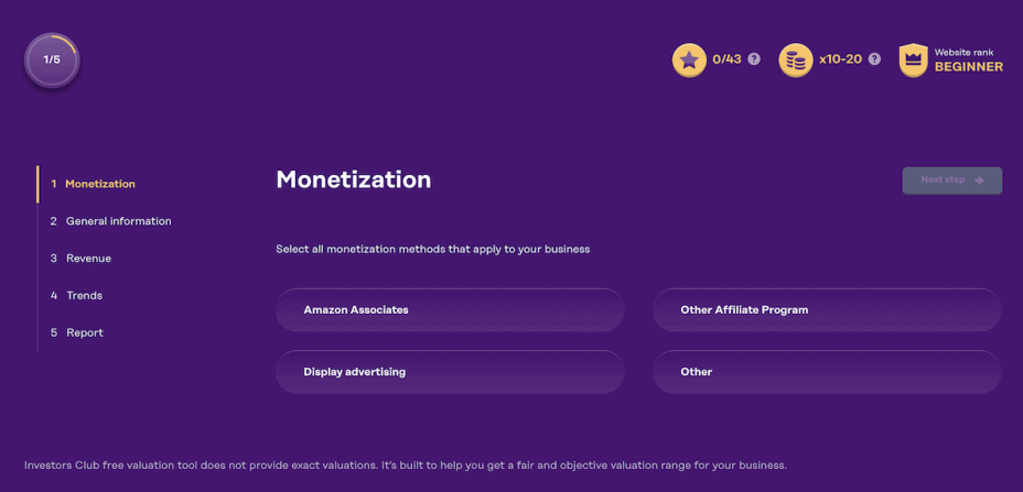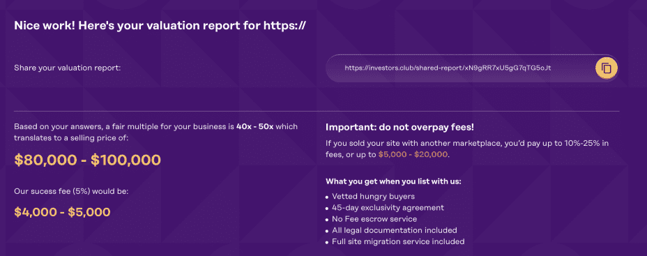 Investors Club offers a free valuation tool that gives you an honest and fair idea of your site’s potential selling price.