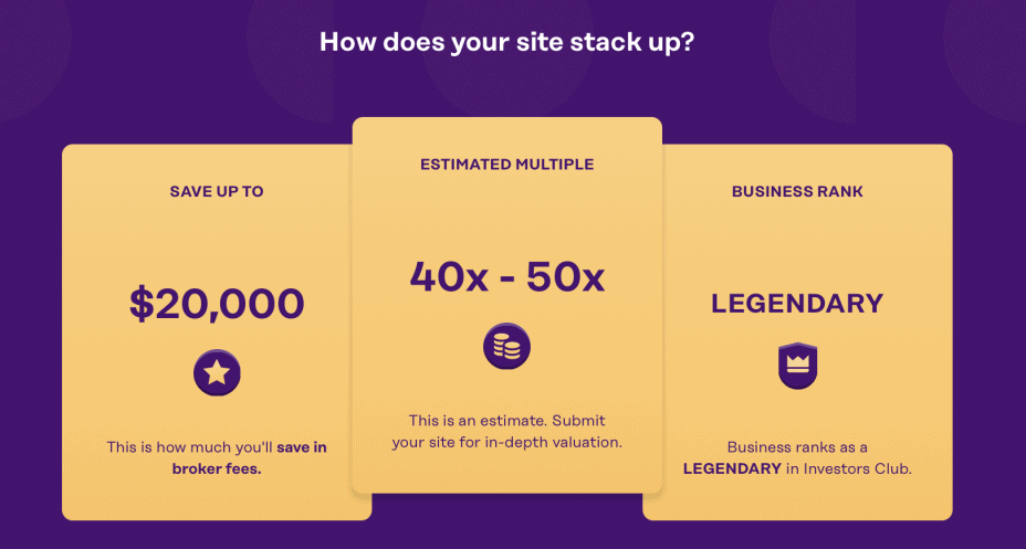 Scroll down and you’ll see how your site stacks up including our business ranking for it, the estimated multiple, and what you can expect to save by selling through Investors Club — it’s more than you’d think. Sometimes even we’re surprised…